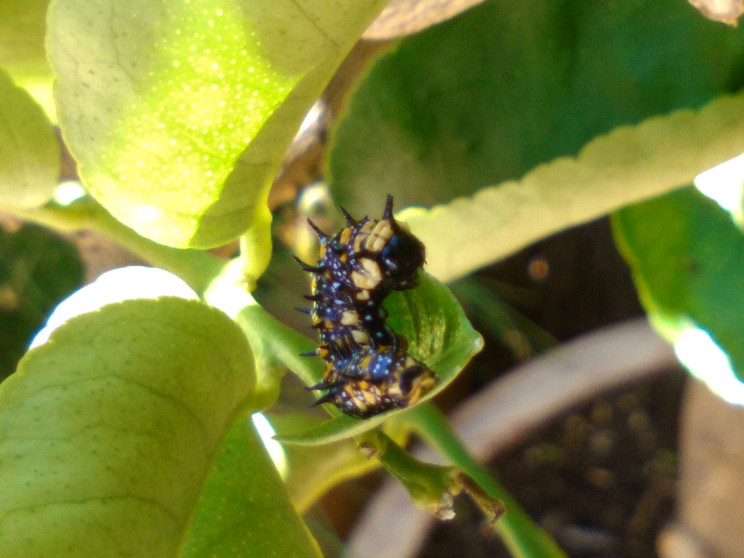 IMG_20151230_113541 dainty swallowtail caterpillar (voraciously eating lime leaf) Liza Lim on December 30, 2015