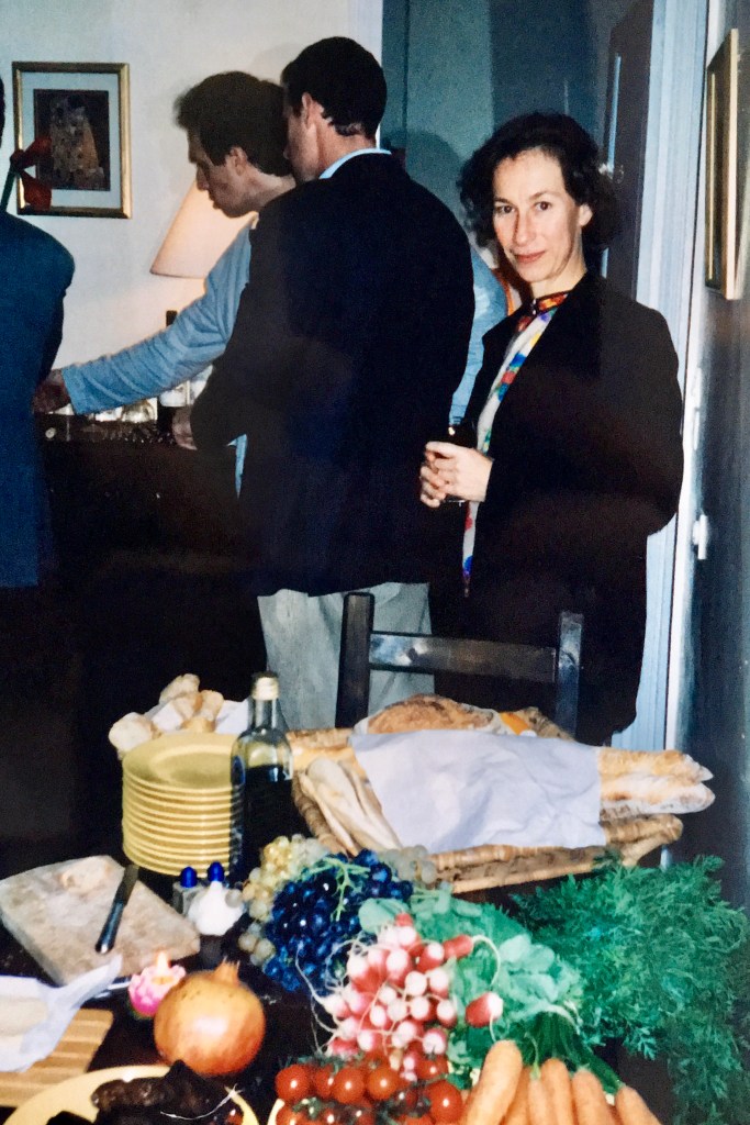 Composer, oboist, creative director extraordinaire, Cathy Milliken smouldering next to the crudités, Paris 1999 (photo: L.Lim)