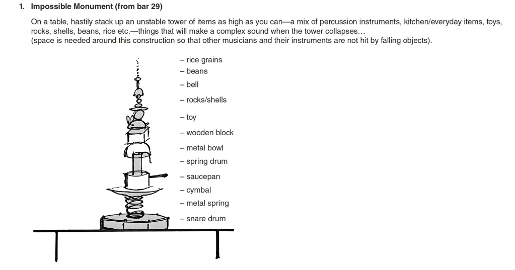 Ex.1. Score instruction, The Tailor of Time, ‘impossible monument‘ (score published by Ricordi Berlin)