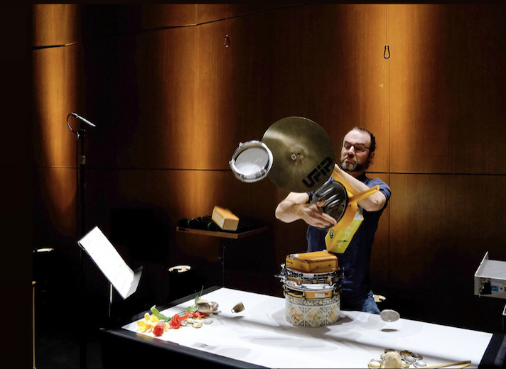 Within the ensemble, one of the percussionists embodies a kind of crazy/absurd/paradoxical/Sufi-spiritual state and has a number of ‘instruction pieces’ in which activities are described that also result in sounds as the musician moves objects and interacts with them.
