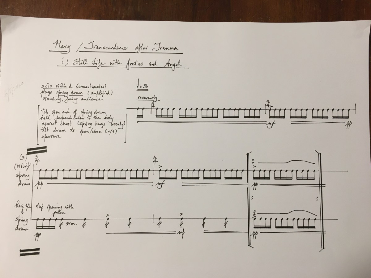 I’ve just completed writing the second orchestral piece of my Annunciation Triptych called ‘Mary/ Transcendence after Trauma’ for which I recently posted some sketches. I wrote about the first part, Sappho/ Bioluminescence earlier this year and now there’s one remaining part to compose, ‘Fatimah/ Flowers of Jubilation’. Mary/ Transcendence after Trauma was commissioned by the Musica Viva concert series ...